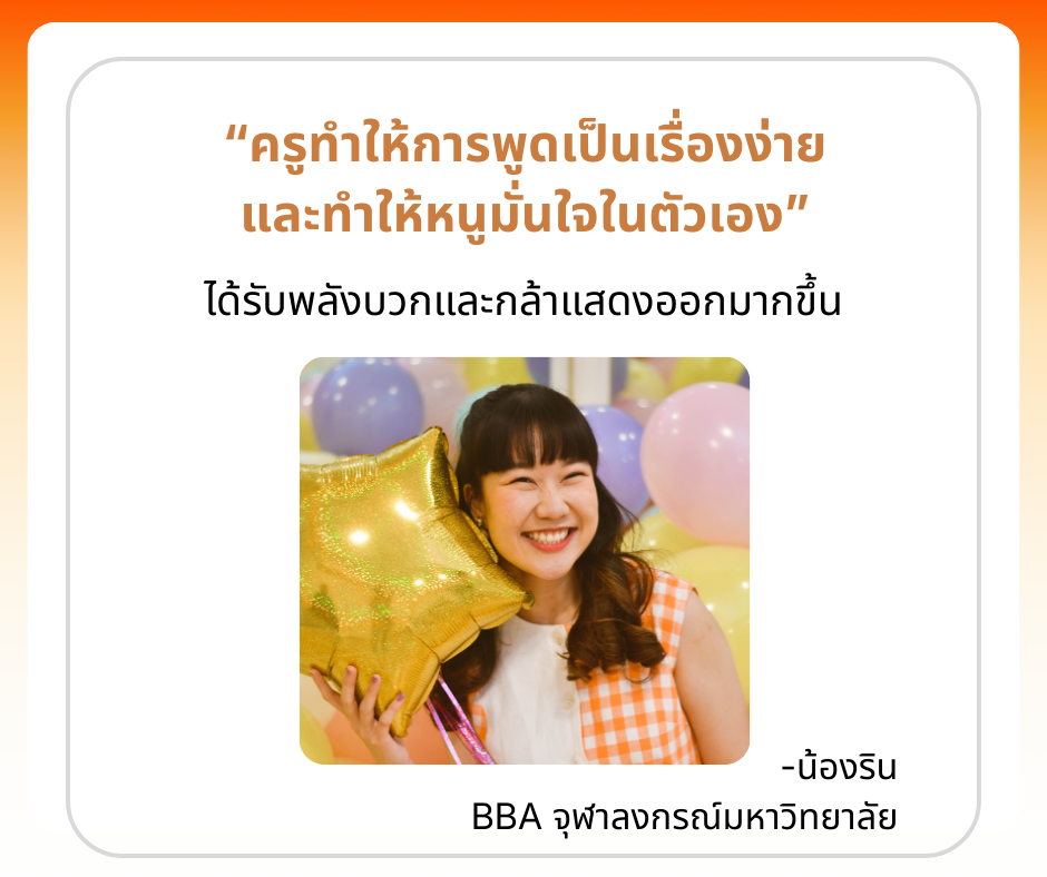 “จากเด็กขี้อาย ไม่มั่นใจ วันนี้หนูกล้าออกไปจากความกลัวแล้วค่ะ”